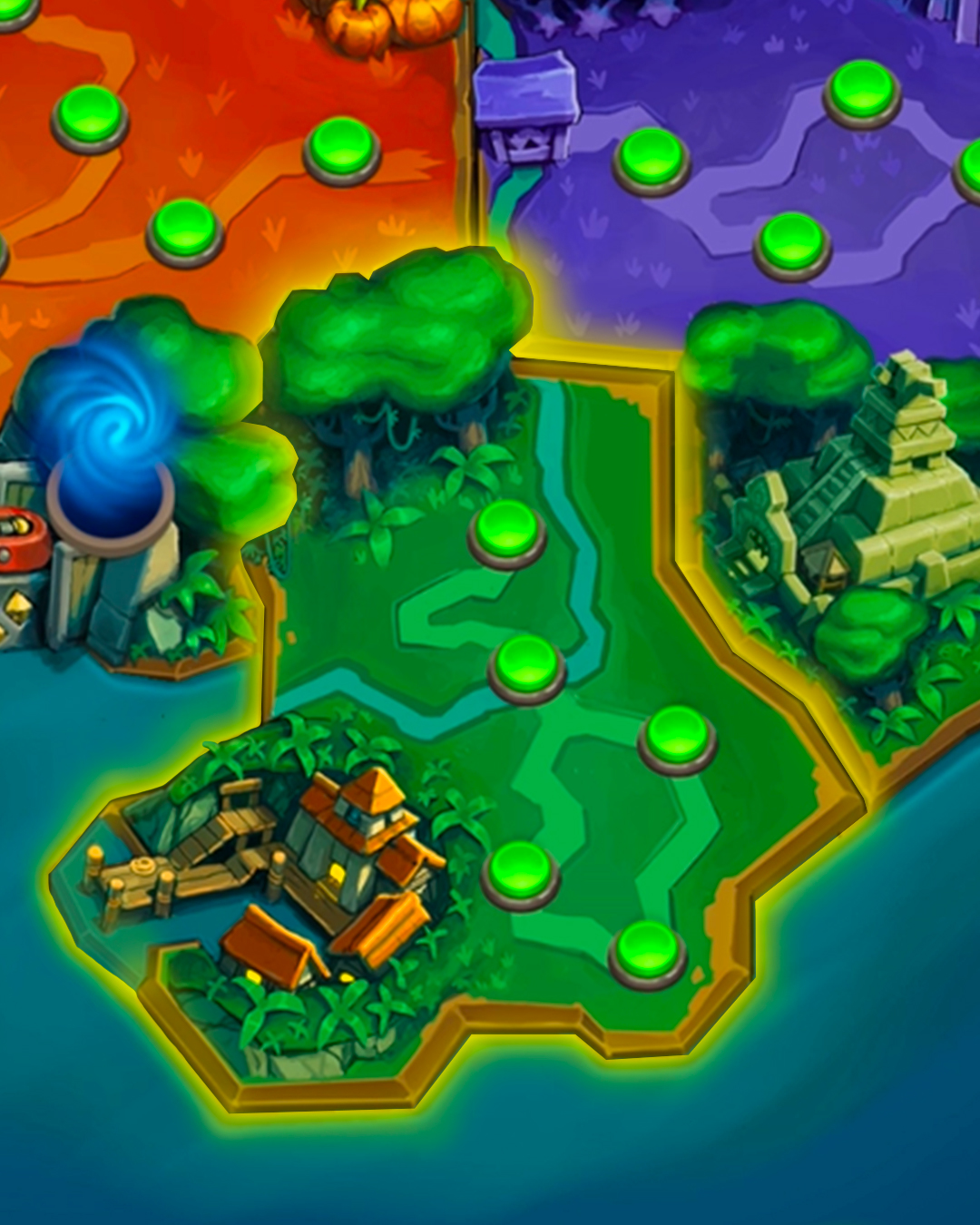 N’hésitez pas à mettre la main sur tout ce qui brille ! Il est important de récupérer de l’or si vous voulez dominer les voies. Les gisements d’or et les coffres au trésor vous attendent, et plus vous obtenez d’or, plus vous sèmerez le chaos sur le champ de bataille.