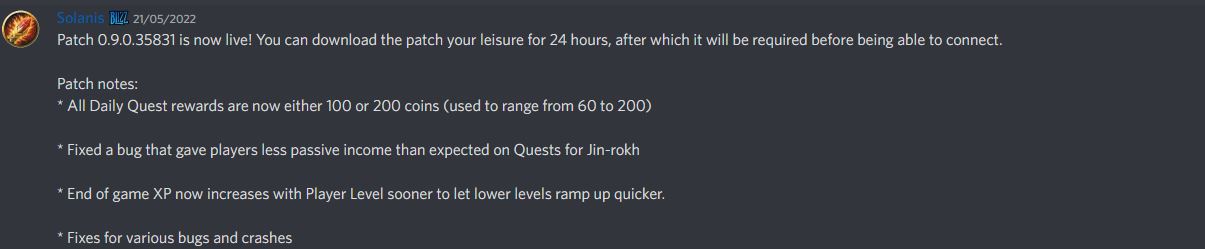 - Correction d'un bug (problème) qui donnait aux joueurs moins de revenus passifs que prévu sur les quêtes pour Jin-rokh.