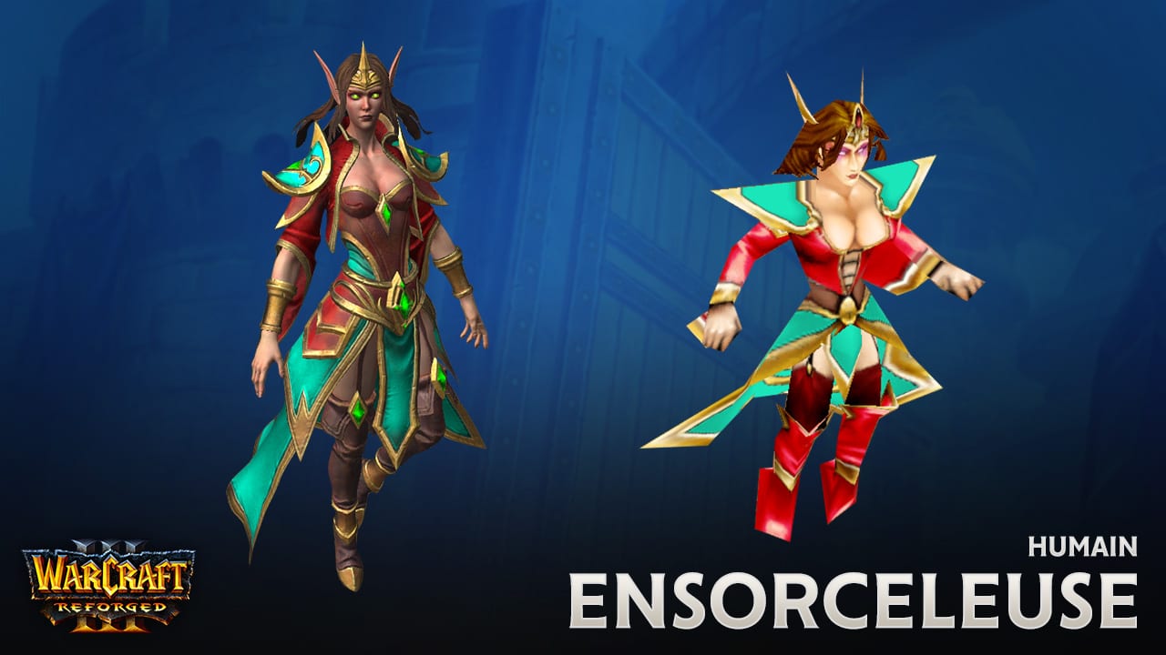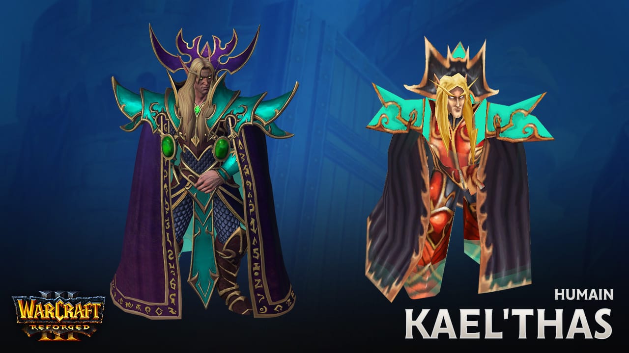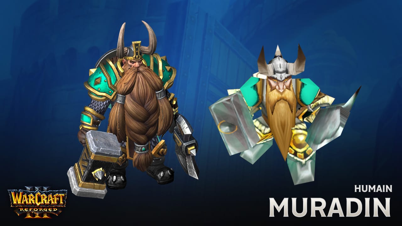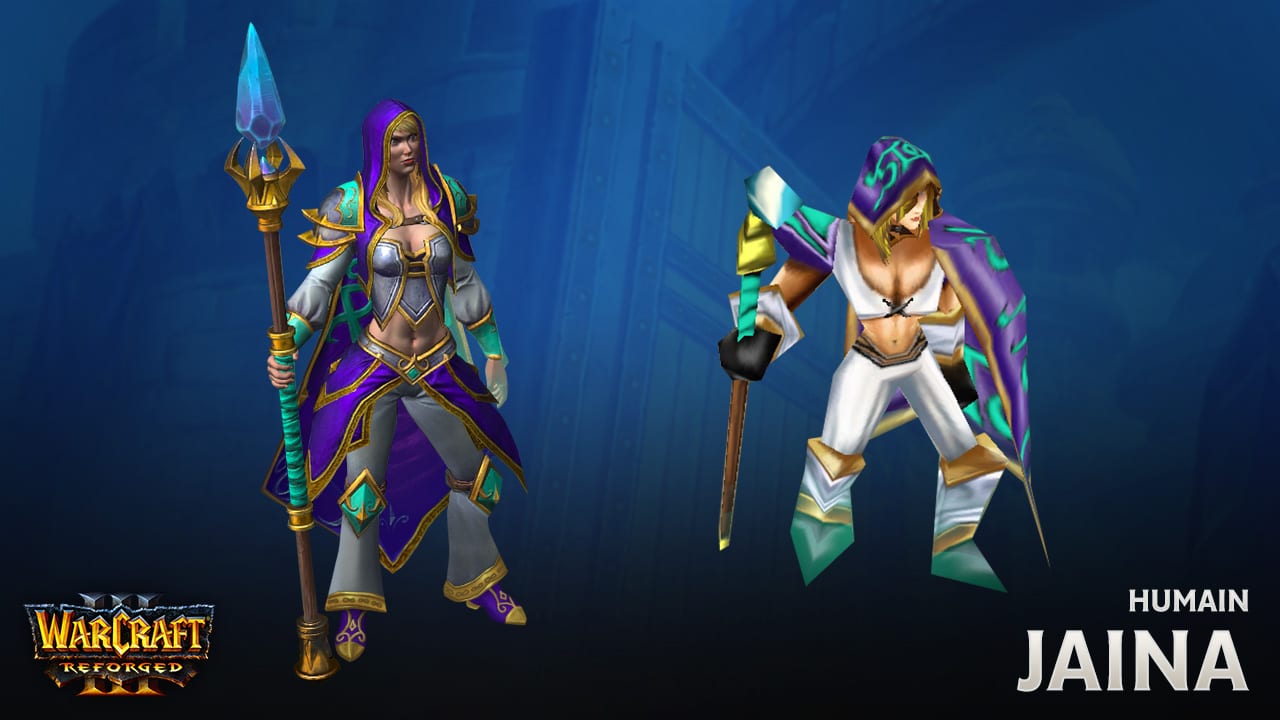 Puisant leur pouvoir dans la Lumière, les imposants paladins manient le marteau et le feu sacré pour défendre les humbles et les innocents. Lorsque le Fléau mort-vivant menaçait de détruire son foyer natal, le prince Arthas Menethil était prêt à payer n’importe quel prix pour le protéger, mais il n’a jamais été aussi élégant. La personnalité d’Arthas et des autres paladins que vous avez incarnés dans Warcraft III® est amplifiée par une esthétique identique à celle dont vous vous souvenez : d’imposants espauliers, de gigantesques maillets de guerre et de volumineux librams. Glorieux ! Jaina Portvaillant (archimage) Originaires du royaume magique de Dalaran, les archimages représentent le sommet de la puissance arcanique. Alors que son seul désir était d’étudier, Jaina Portvaillant a été prise au beau milieu d’une guerre face à un ennemi contre lequel elle s’est trouvée cruellement désarmée. La nouvelle Jaina arbore des robes somptueuses et ornées, son bâton emblématique (inspiré du modèle de World of Warcraft®) et quelques surprises inédites. En multijoueur, l’archimage « Antonidas » a bénéficié d’un modèle remis au goût du jour qui donne vie aux petits détails qui se cachaient sous les 700 et quelques polygones de sa version d’origine. Ce nouveau modèle contient 15 000 polygones, arbore une peau ridée et détaillée, une longue barbe, un diadème orné et bien d’autres éléments. Ça ne vous dit pas ? Pas de problème. Dans les parties multijoueur, vos archimages seront peut-être représentés par d’autres personnages. Muradin Barbe-de-Bronze (roi de la montagne) Les rois de la montagne, ou « thanes », tels qu’ils sont appelés en Khaz Modan, ne vivent que pour se mesurer à de valeureux adversaires. Membre fondateur de la Ligue des explorateurs, Muradin Barbe-de-Bronze s’est rendu en Norfendre à la recherche de Deuillegivre, une lame runique mythique à l’histoire terrifiante. Son imposante barbe et son heaume unique s’inspirent largement de son apparence dans Heroes of the Storm™. Cette robuste version du roi de la montagne destinée au mode multijoueur s’inspire de l’apparence emblématique des Nains dans World of Warcraft®. Protégés par des armures d’écailles et d’épaisses fourrures, les thanes portent des boucliers nains somptueusement ornés et sont extrêmement fidèles à leur serment envers l’Alliance. Kael’thas Haut-Soleil (mage de sang) Réfugiés prêts à tout pour augmenter ce qui reste de leurs pouvoirs magiques, les mages de sang sont si passionnés qu’ils frôlent parfois les profondeurs les plus obscures de la folie. Avant même ses mésaventures en Outreterre, Kael’thas était déjà déterminé à sauver son peuple à tout prix. Son nouveau modèle reflète son statut royal et sa terrifiante puissance arcanique. L’esthétique de la civilisation des Hauts-elfes n’était pas encore clairement établie à la sortie de Warcraft III, et reprenait principalement l’architecture des bâtiments humains, mais les années consacrées à leur donner vie dans World of Warcraft ont inspiré l’équipe artistique lorsqu’il a fallu repenser l’apparence du mage de sang. Ce lanceur de sort elfe a désormais l’allure élancée propre aux peuples de Quel’Thalas, et porte des espauliers décorés et monumentaux typiques des membres de l’Alliance.UNITÉS
