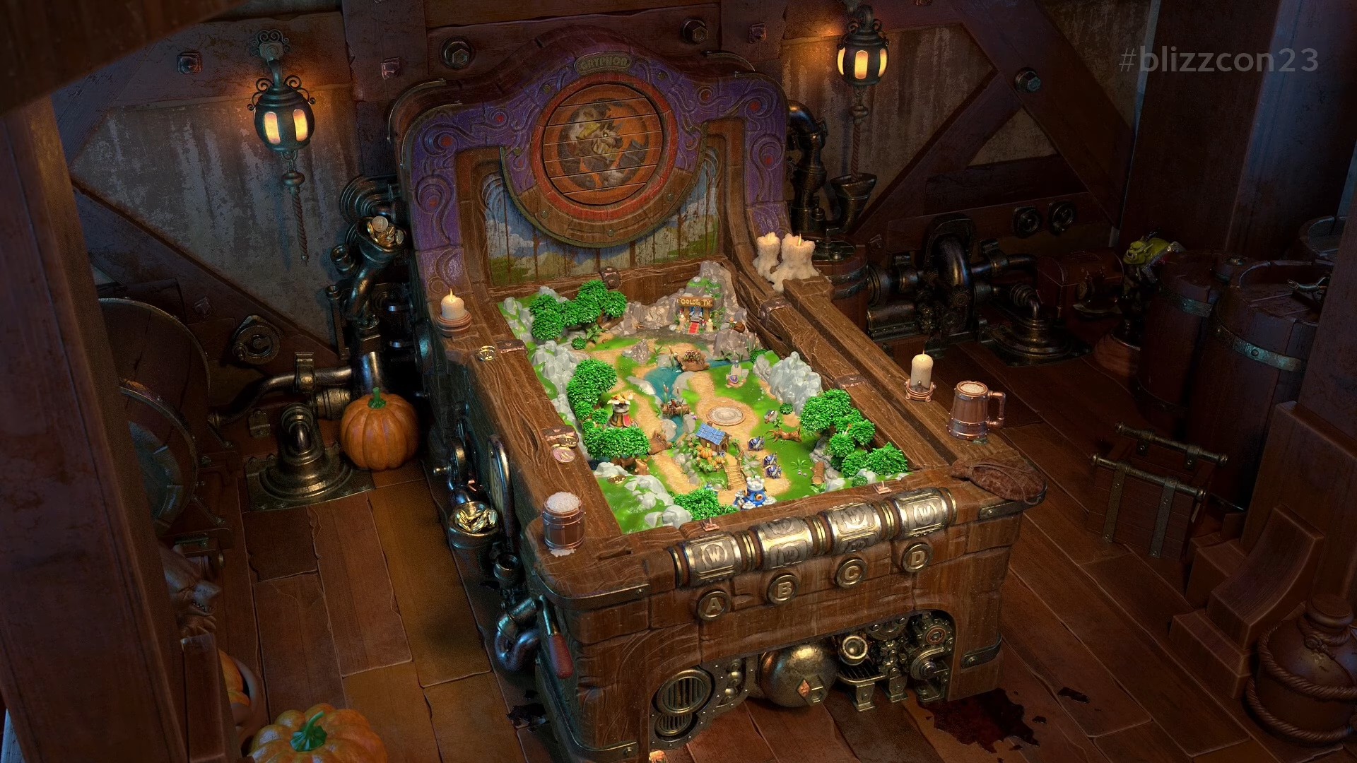 Pour ajouter leur touche à la franchise Warcraft, ils ont ajouté des détails à la surface des personnages. Dans Warcraft Rumble, la machine crée les figurines dans la Chambre de création, qui se situe en bas de la machine. C'est à cet endroit que toutes les figurines sont conçues pour ensuite entrer sur le terrain. Blizzard s'est donc demandé qui avait créé les modèles de ces figurines dans le lore de Warcraft.