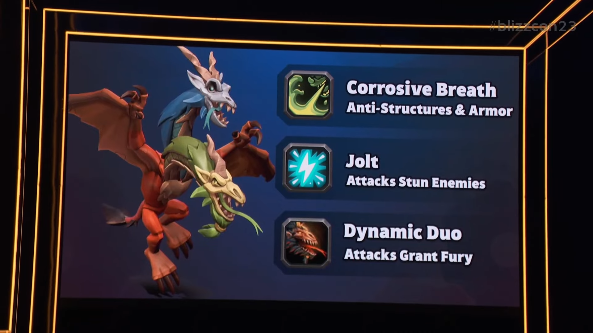 - Souffle corrosif (anti-structures et armure) : Inflige des dégâts significativement plus élevés aux tours, aux bâtiments et aux ennemis dotés d'une armure.
