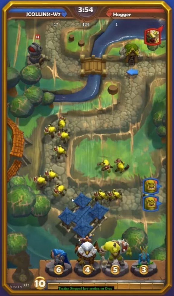 Un autre test montre l'exploration du plateau de jeu sous toutes ses coutures, qui permettait de tester le nombre d'Orcs qu'ils pouvaient placer sur l'écran à un moment donné. Ils ont pu en placer un grand nombre. C'était aussi la première fois qu'ils voyaient leurs unités marcher sur une surface.