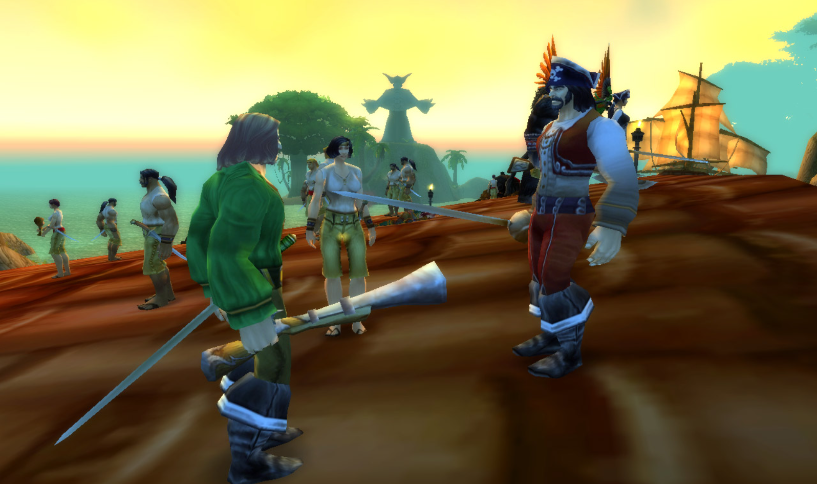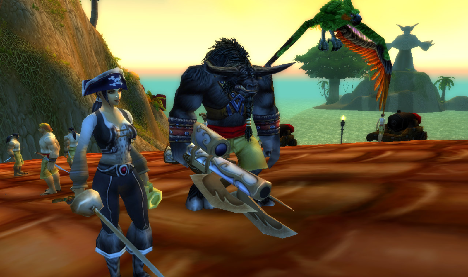 Tout d’abord, parlez à n’importe quel roturier pirate pour recevoir un costume qui vous aidera à vous mettre dans l’état d’esprit qui sied au jour des pirates. Une fois proprement accoutré, foncez vers Baie-du-Butin pour rejoindre la fête. Ici, cherchez la capitaine DeMeza de l’effroi et son équipage occupant les toits de la banque et de la salle des ventes de Baie-du-Butin. En parlant avec la capitaine, les joueurs deviennent des membres d’honneur de l’équipage et se transforment en pirate pendant une période de 12 heures. Cet effet de costume peut être annulé d’un simple clic mais persiste pendant le combat, sur votre monture, à travers la mort, etc. On pourra retrouver d’autres moments forts lors de cet évènement :