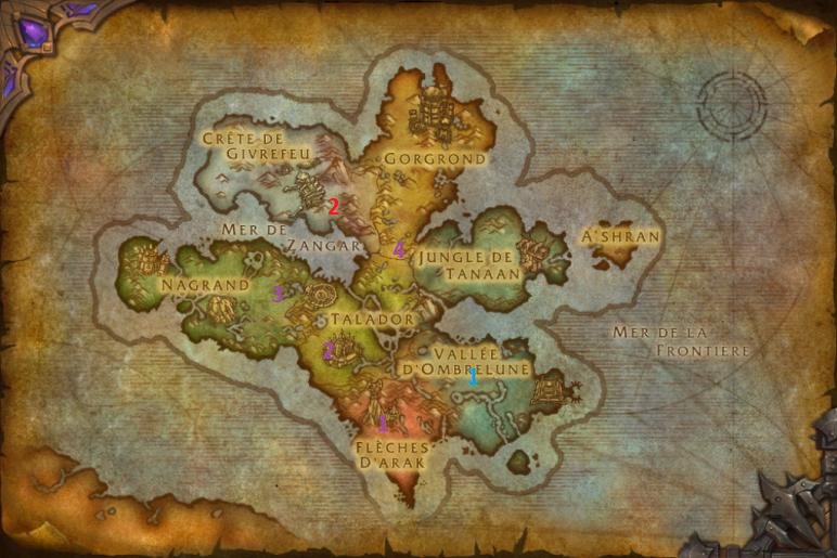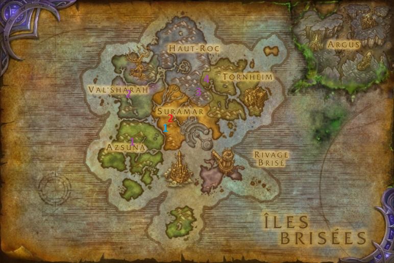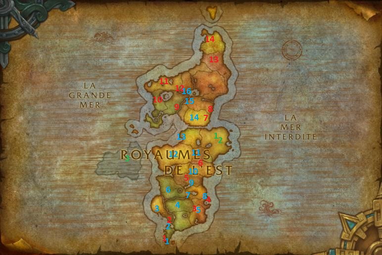 • Les numéros en rouge sont les feux de joie de la Horde.