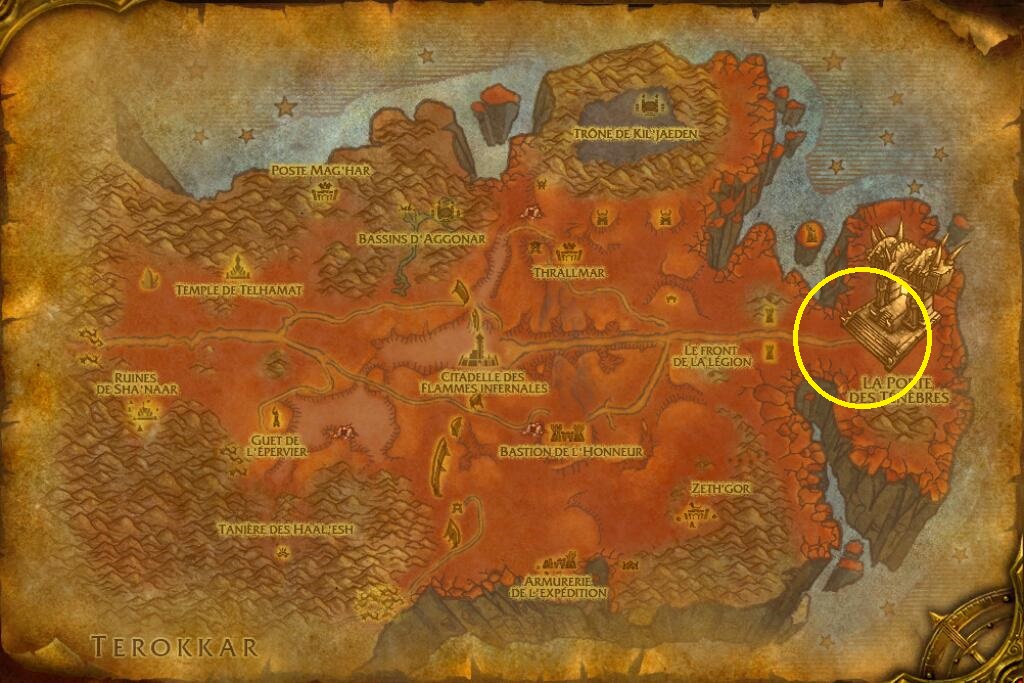 Rendez-vous auprès de tous les feux de joie de l'Outreterre indiqués sur la carte ci-dessous pour accomplir ces deux hauts-faits.
