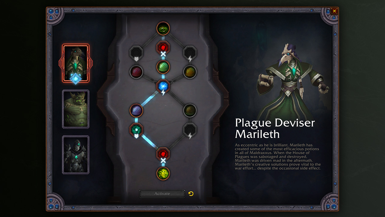 En supplément des capacités spécifiques à vos liens d’âme, vous pourrez personnaliser vos avantages via les intermédiaires que vous récupérerez durant les différentes activités que vous réaliserez dans Shadowlands (tels que les donjons, raids, le JcJ ou les expéditions), permettant une meilleure flexibilité. Lorsque vous en posséderez, vous aurez la possibilité de les intégrer dans un emplacement adapté de l’arbre de talents passifs de votre âme liée.