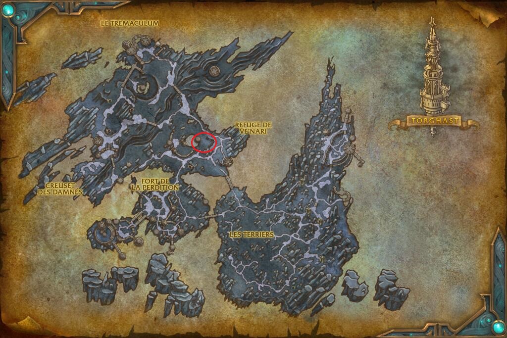 - Morv' (coordonnées : 31,96 ; 57,05) : Sur une caisse non loin du PnJ Len le Malchanceux. Il se situe sur la route menant à l'Assemblée inflexible.