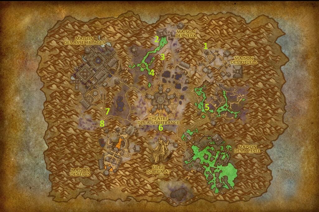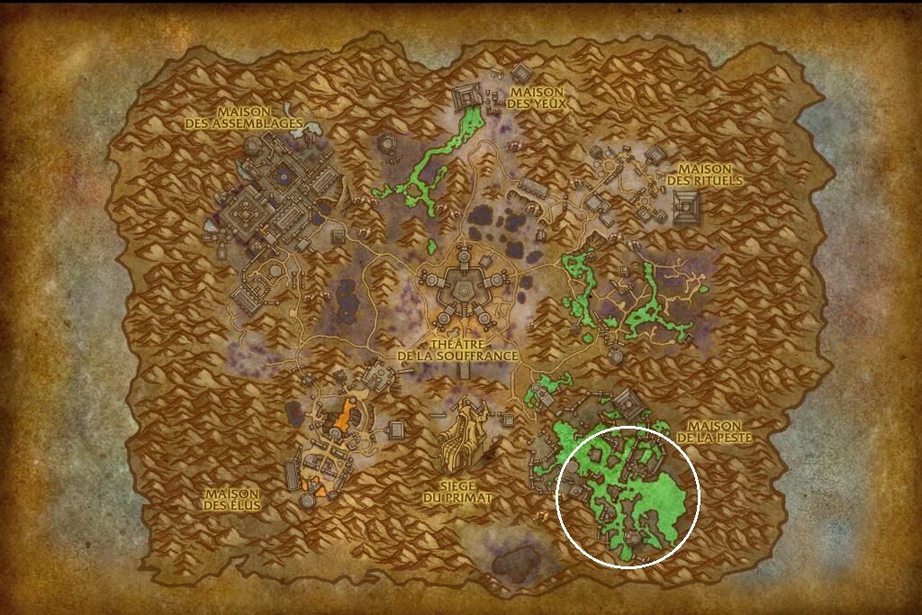 - Raminapestis (coordonnées : 50,25 ; 60,28) : Sous le pont reliant le Siège du Primat et le Théâtre de la Souffrance.