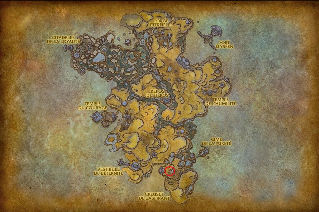 - Boule-de-poils (coordonnées : 65,22 ; 50,65) : Cette créature est située dans le donjon à 5 joueurs : Malepeste. Il est possible d'atteindre la cachette du chaton après avoir vaincu le 3ème boss de l'instance. Il vous faut alors sauter dans le bassin.