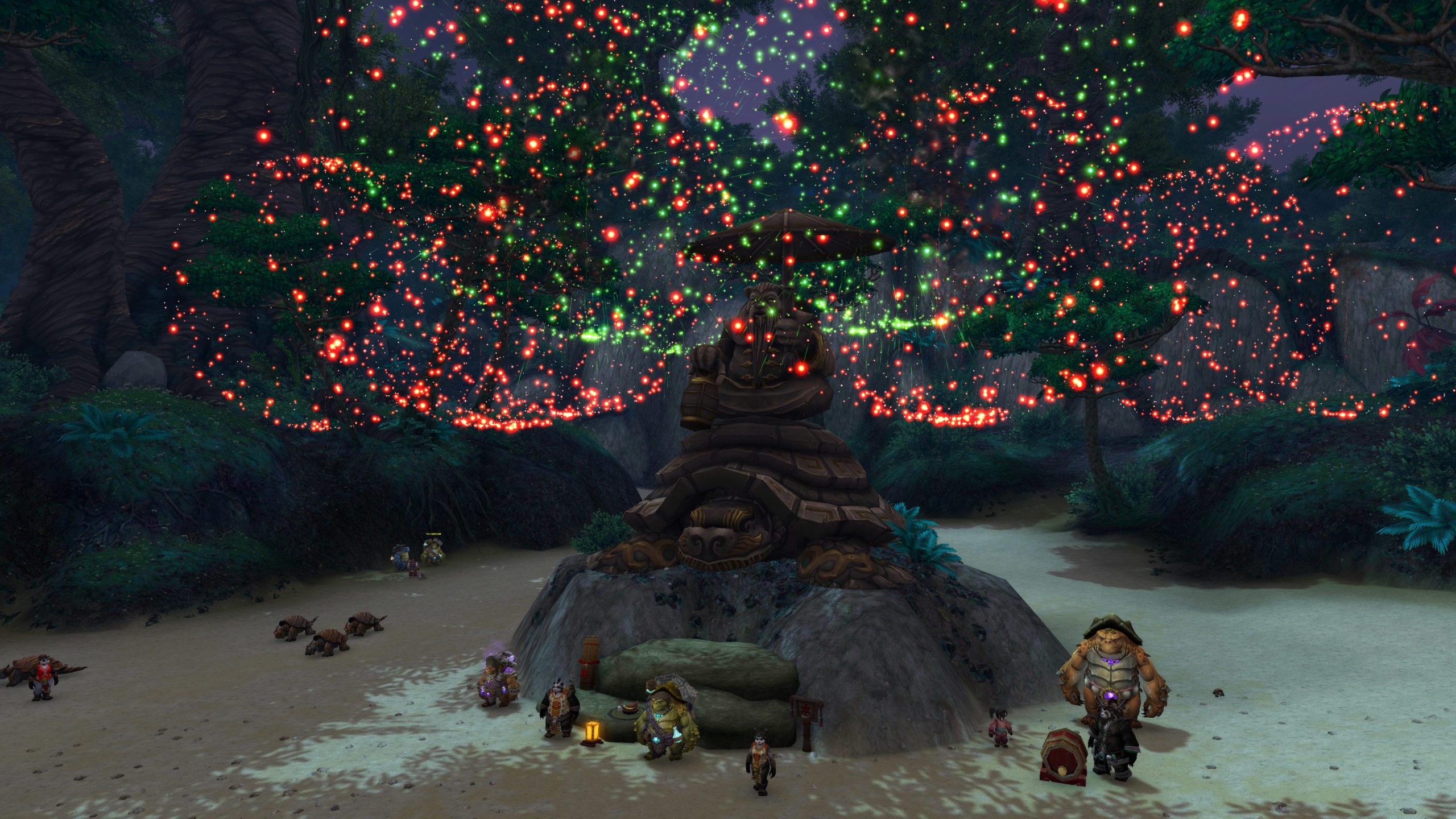 Vous y retrouverez des légendes, chansons, feux d’artifices ainsi qu’une célébration avec des lanternes au rivage dans le but de retrouver les pandarens passionnés de voyages à dos de tortue.